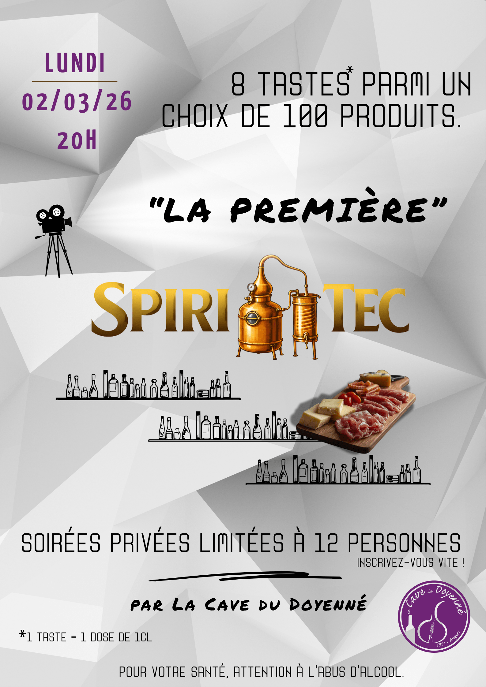 La Première Billetterie Weezevent La Cave du Doyenné vous ouvre les portes de “La Première” soirée SPIRI’TEC, une soirée privée pensée pour les amateurs de beaux spiritueux et les curieux en quête de découvertes. Au programme, des flacons que...